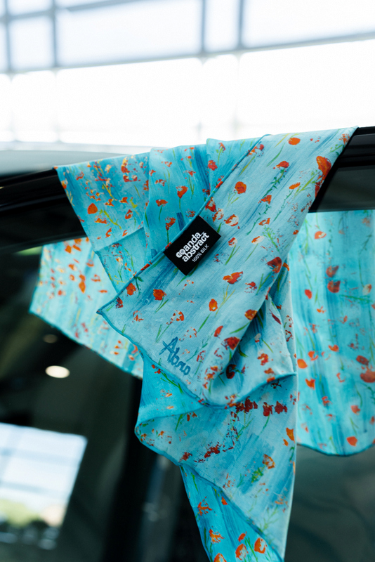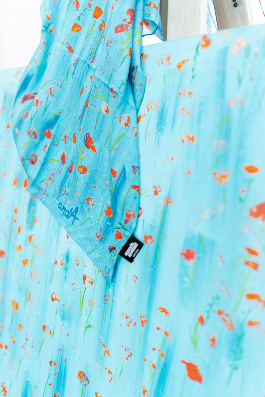 The POPPIES silk scarf (55x55 cm) is a compact work of wearable art.